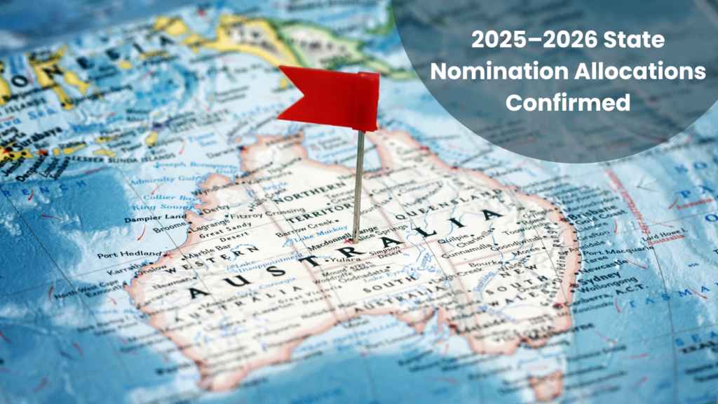 These allocations reflect the number of new candidates jurisdictions are permitted to nominate during the year. Visa grants remain subject to Department of Home Affairs processing and skilled visa priorities.